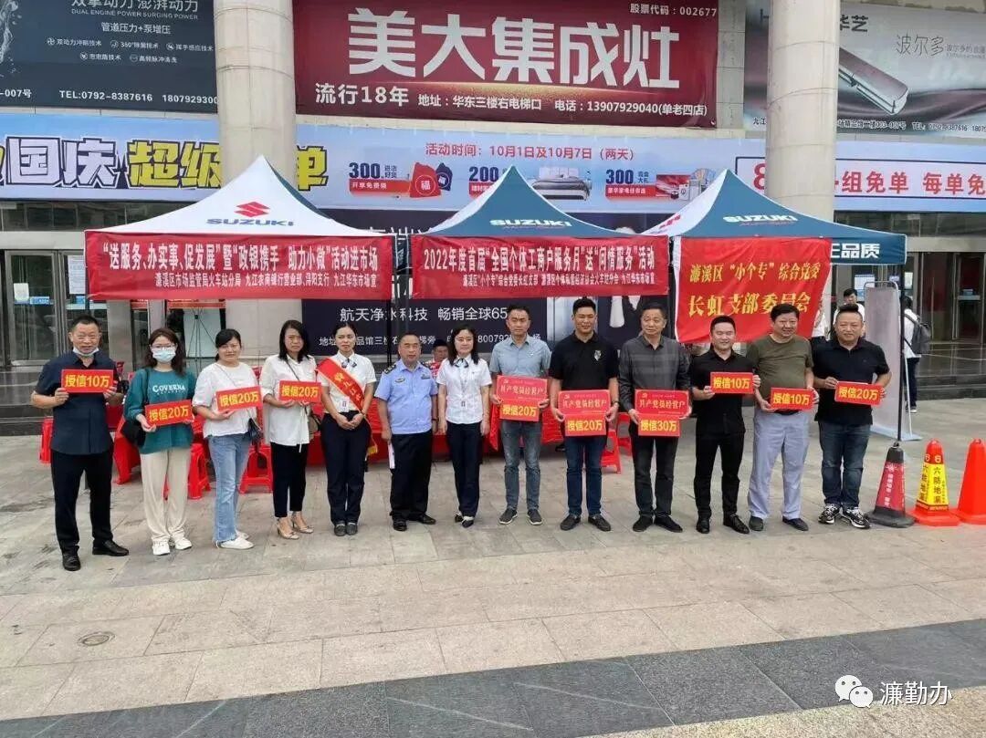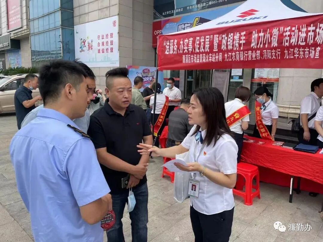 9月23日,濂溪区“小个专”综合党委长虹支部联合濂溪区个体私营经济协会火车站分会、九江农商银行营业部及浔阳支行在九江华东市场开展首届“全国个体工商户服务月”问情服务暨“政银携手 助力小微”宣传活动。