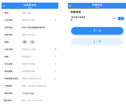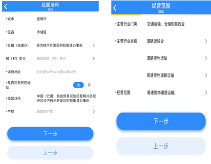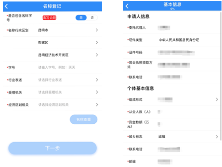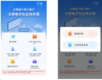 2、进入“云南省个体工商户全程电子化业务办理”APP主页,选择需要办理的登记业务进行信息填报并提交签名申请;云南自由贸易试验区经投政务服务有限公司