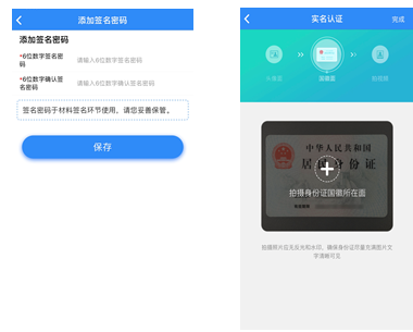 登录后完善用户个人信息,同时设置签名密码,借助中国移动身份认证体系,完成身份信息实名认证;