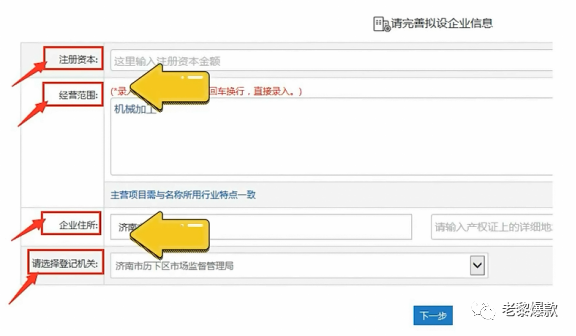 建议注册资本要大于3万;经营范围尽量选择全,卖什么产品一定选择全,不要漏选。都填好之后点击下一步。
