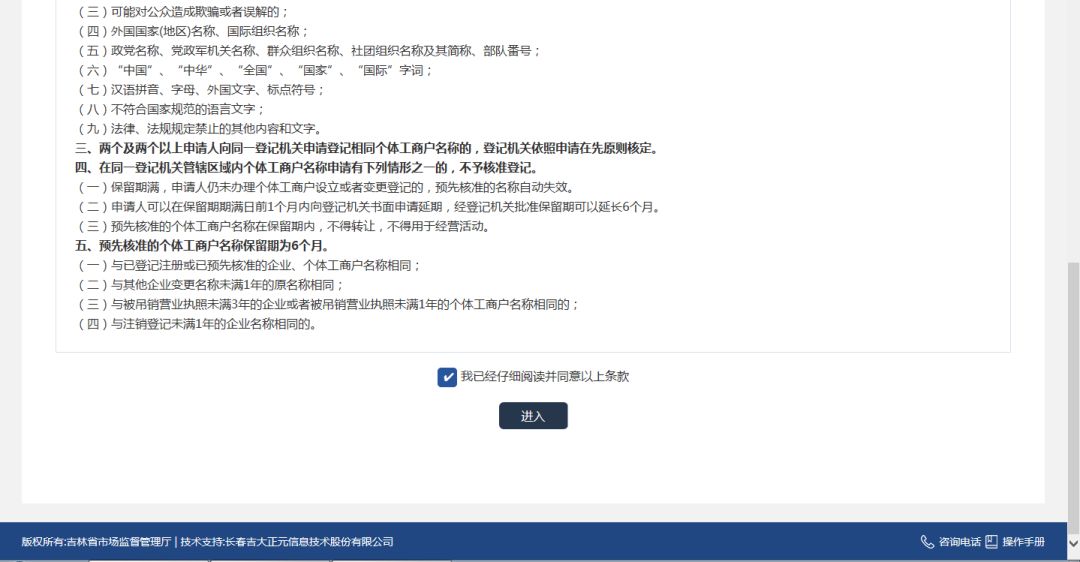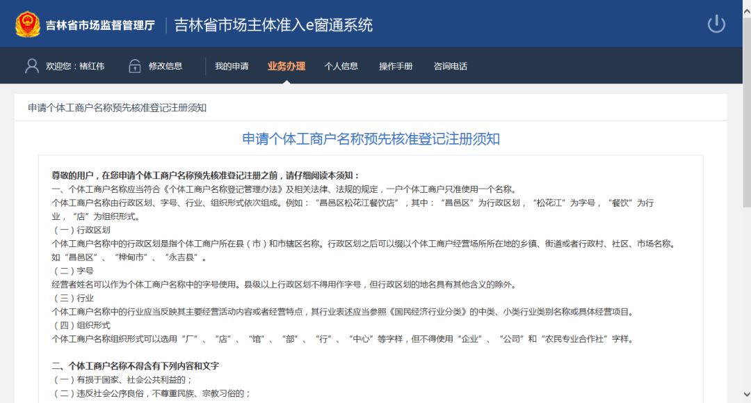 点击登陆后进入到个体名称申请须知页面。