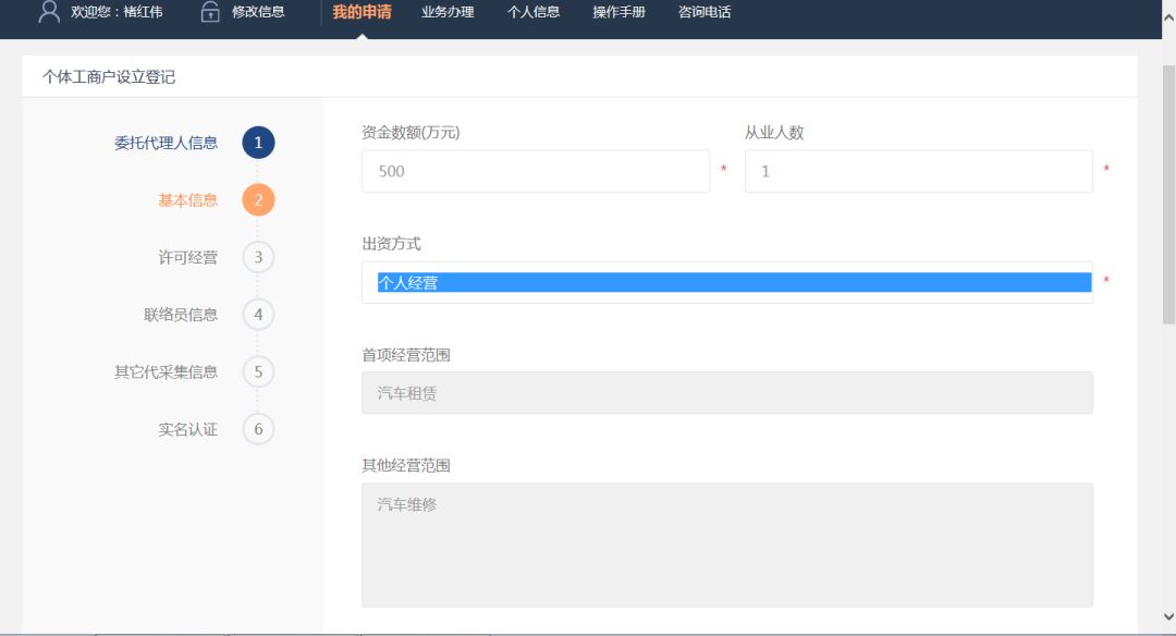 系统流转到经营信息页面,如下图: