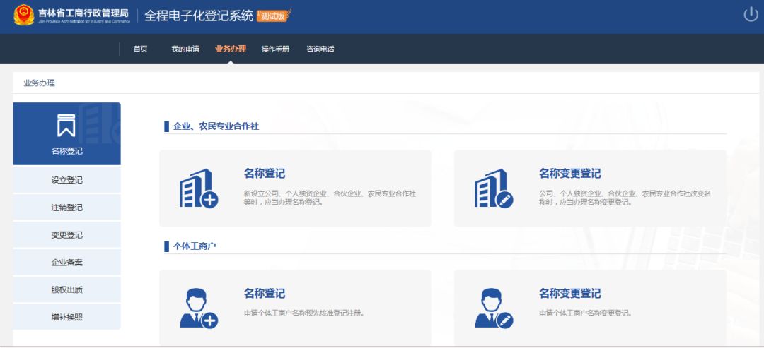 业务办理选择页面如下图: