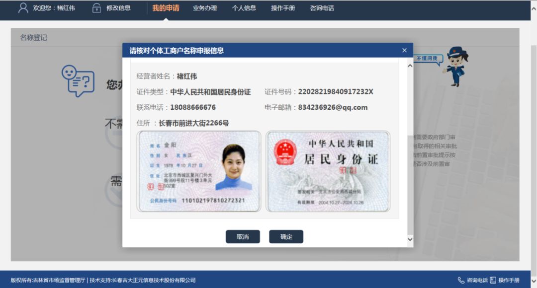 点击“下一步遂宁代办注册公司”按钮,弹出提示窗体“请确认个体工商户申请信息”,如下图: