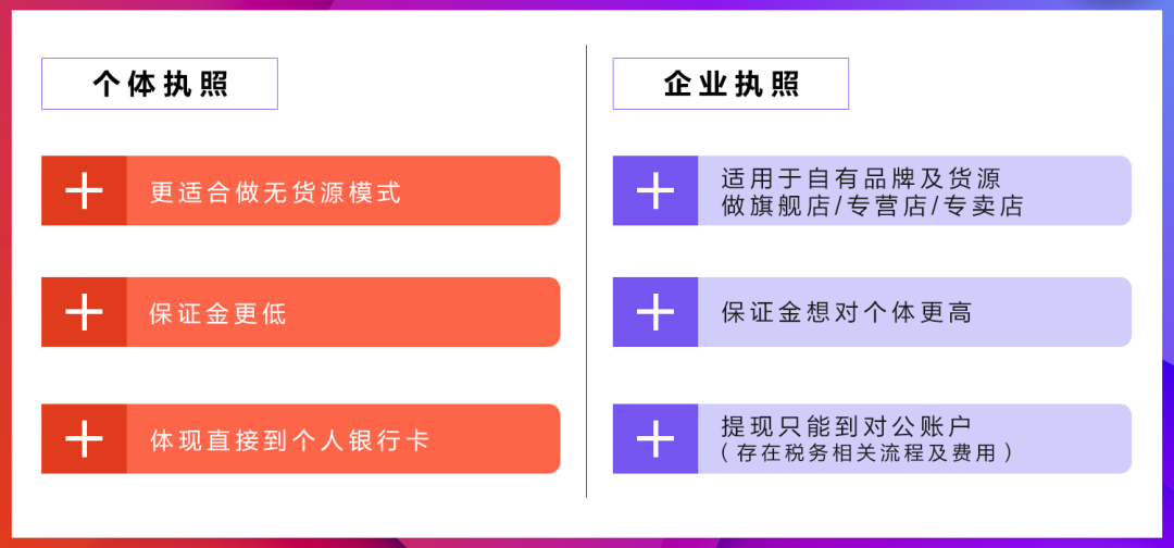 便宜:企业营业执照的保证金是个体营业执照的2倍;比如个体选择服装类目,保证金是2000元;企业营业执照该类目就是4000元;
